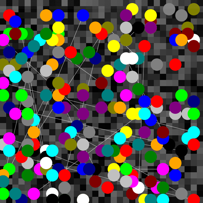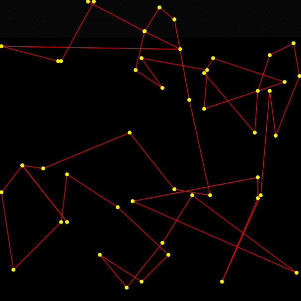 A single connected component forms over time as two agents are connected at random every tick.